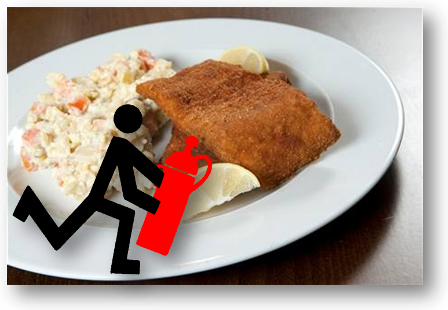 Vánoce jsou také obdobím pečení a vaření. Otevřený plamen plynového sporáku nesmíme nechat bez dozoru. Musíme dbát opatrnosti při vaření, aby nedocházelo ke vznícení připravovaných potravin. Horký olej na pánvi a jiné hořlavé kapaliny se nesmí hasit vodou. Pokud se na pánvi vznítí potraviny, je nejlepší pánev zakrýt pokličkou a oheň tak udusit, případně použít hasicí přístroj s náplní určenou speciálně na jedlý olej. Nejprve je nutné vypnout přívod energie (plyn, elektřina).