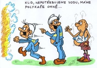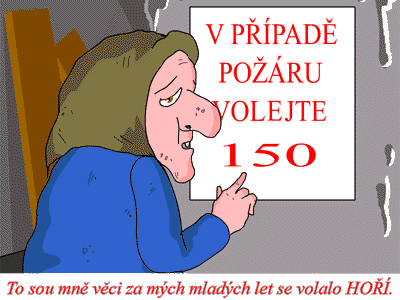 - Všichni byli připraveni, ještě než dozněl zvonek telefonu. Ozval se nesmělý ženský hlas: "Prosím požární stanici. Je to požární stanice?" "Mluvte!" Vyzvala ji stručně služba. "Víte,"vykládala váhavě neznámá, "já mám totiž čerstvě osázenou zahrádku..." "Paní, co je nám do toho," přerušil ji netrpělivě, "tady je požární stanice!" "Ale když moje zahrádka..." snažil se pokračovat naříkavý hlas. "Nezdržujte a volejte zahradnictví!" Rozčílila se služba u telefonu. "Nechte mě, prosím Vás, domluvit," řekla žena vyčítavě, "vedle u sousedů už hezkou chvíli hoří, a tak jsem Vás jen chtěla poprosit, abyste mi nešlapali po zahrádce až Vás zavolají..."